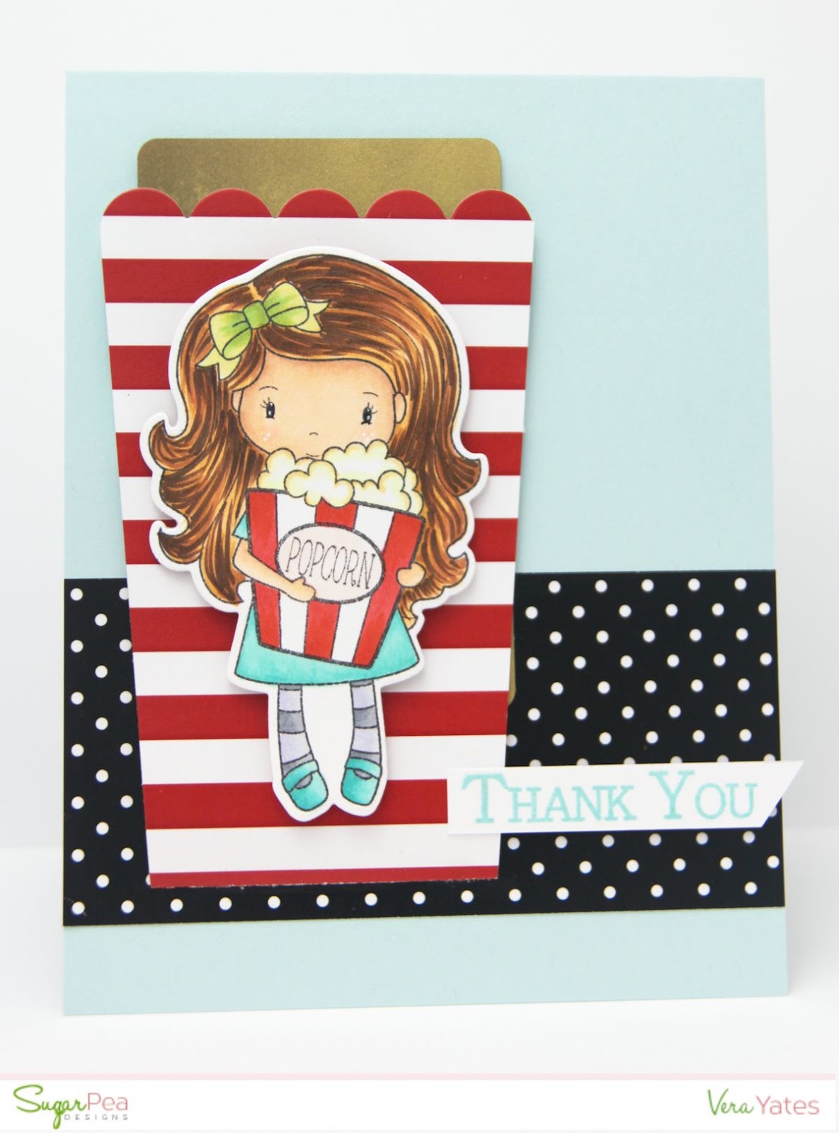 How adorable :) This little lady is so very sweet and I love the popcorn bag. This is such a fun stamp set with the dies. :)